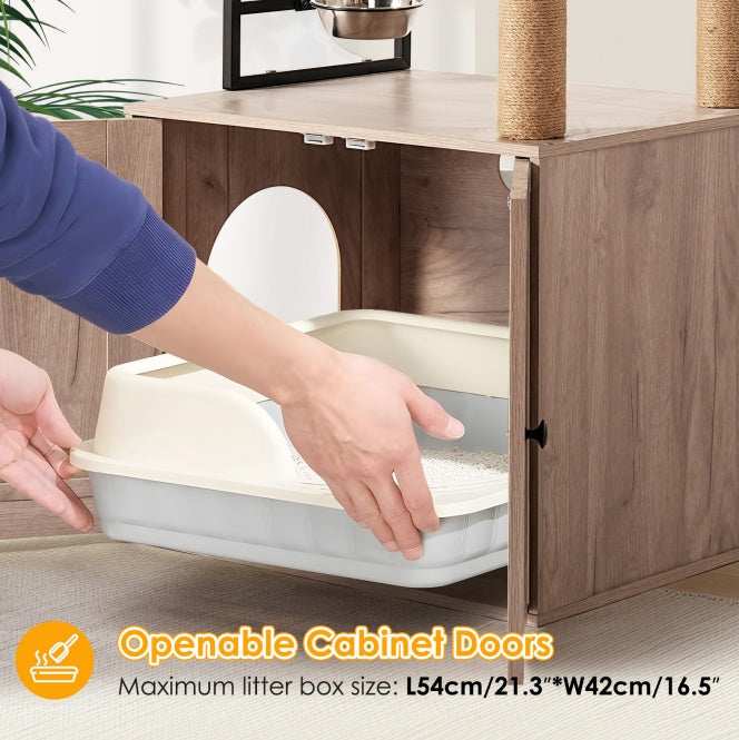 Cat Tree With Litter Box Enclosure - Modern 3-in-1 Cat Condo With Scratching Posts