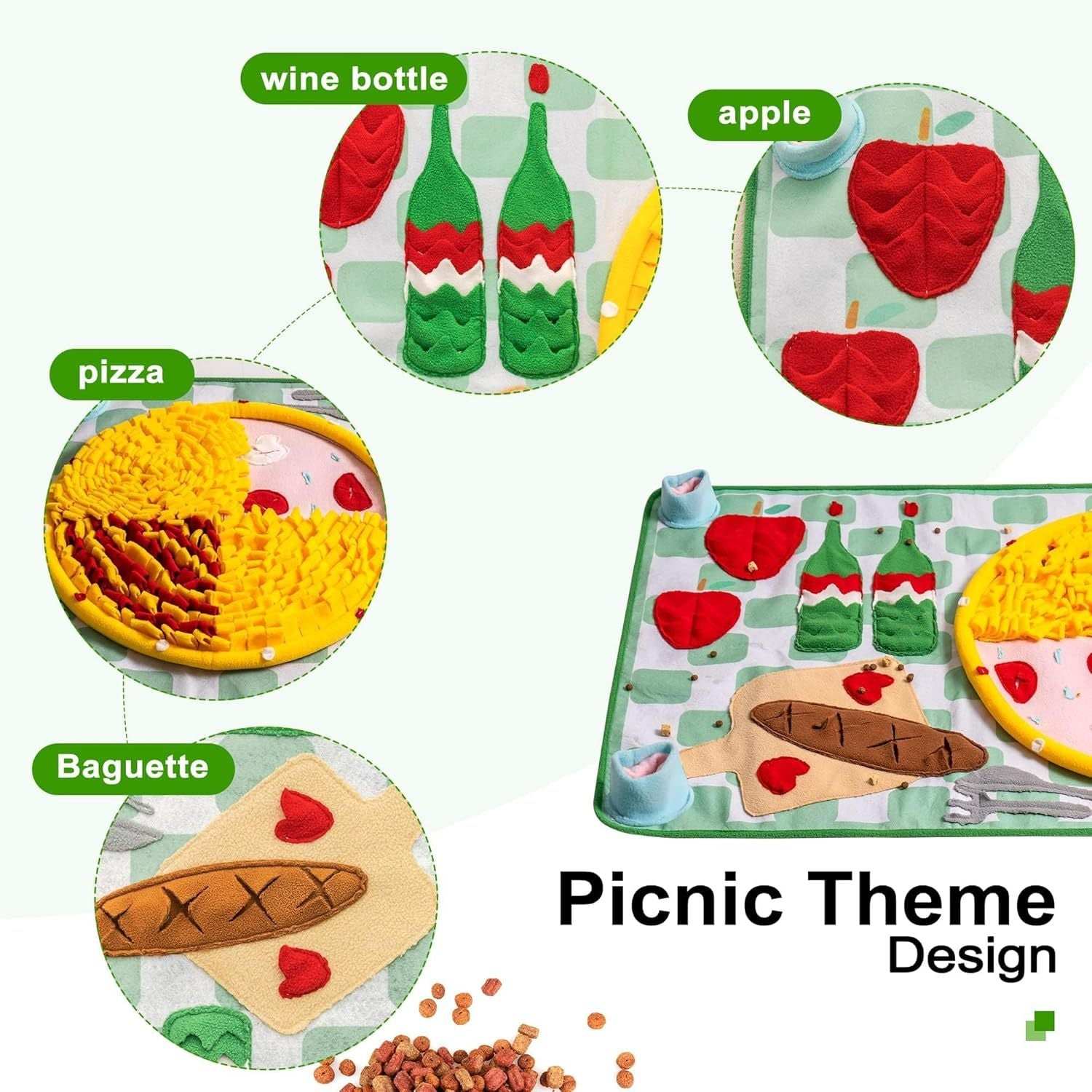 š§© Turn Mealtime Into an Adventure Your Dog Will LoveTransform boring feeding time into an exciting treasure hunt that engages your dog's natural foraging instincts! This delightful picnic-themed snuffle mat isn't just a feeding tool - it's a mental stimulation playground that challenges your pup while slowing down their eating for better digestion. With adorable food-shaped hiding spots like baguettes, apples, and pizza slices, every meal becomes a fun puzzle that keeps your dog entertained and mentally sharp. Complete your dog's enrichment setup with our pet deals collection.